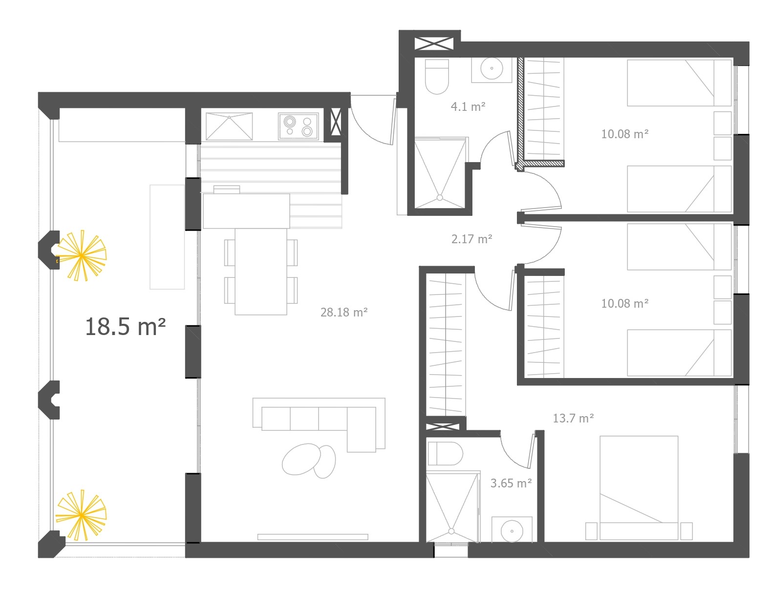 ✅ Access to huge 18.5m2 sun terrace with sea views