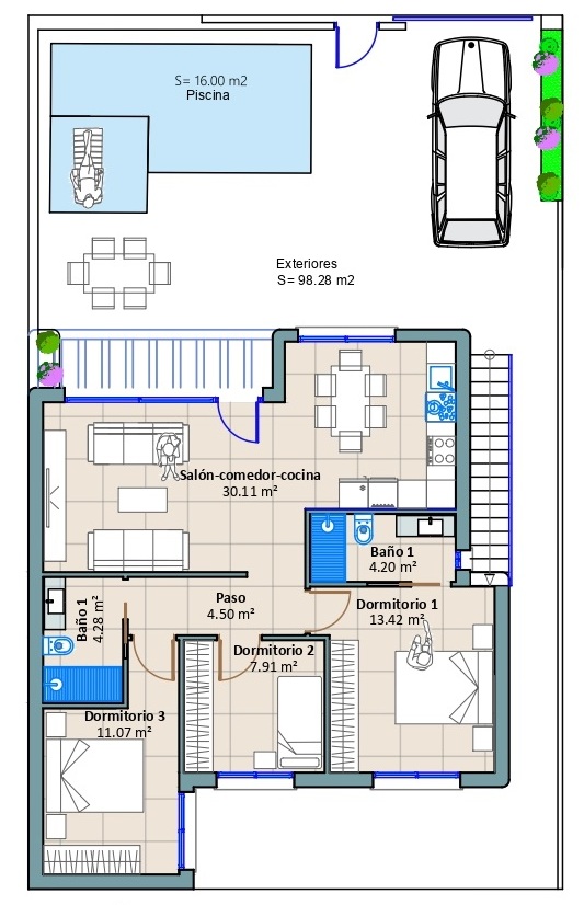 Three bed model (ā¬319,900) has 30m2 lounge, 16m2 pool and 84m2 rooftop solarium