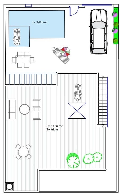 Huge 68m2 private rooftop solarium with pre-installation for summer kitchen
