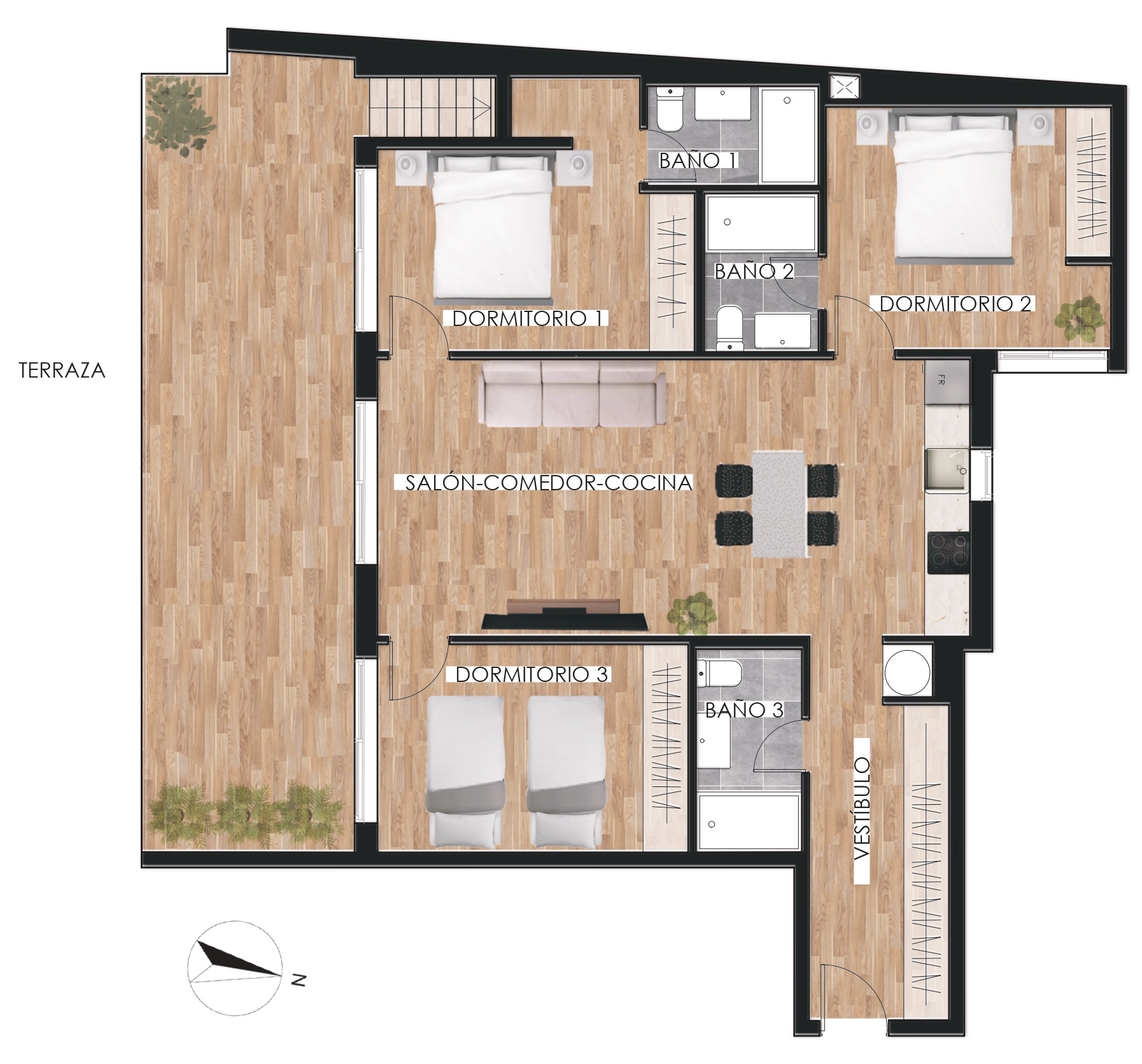 | Atico 5C | 73m2 | 33m2 | 11m2* | 13m2 | 19m2 | 35m2 | ā¬349,000 |