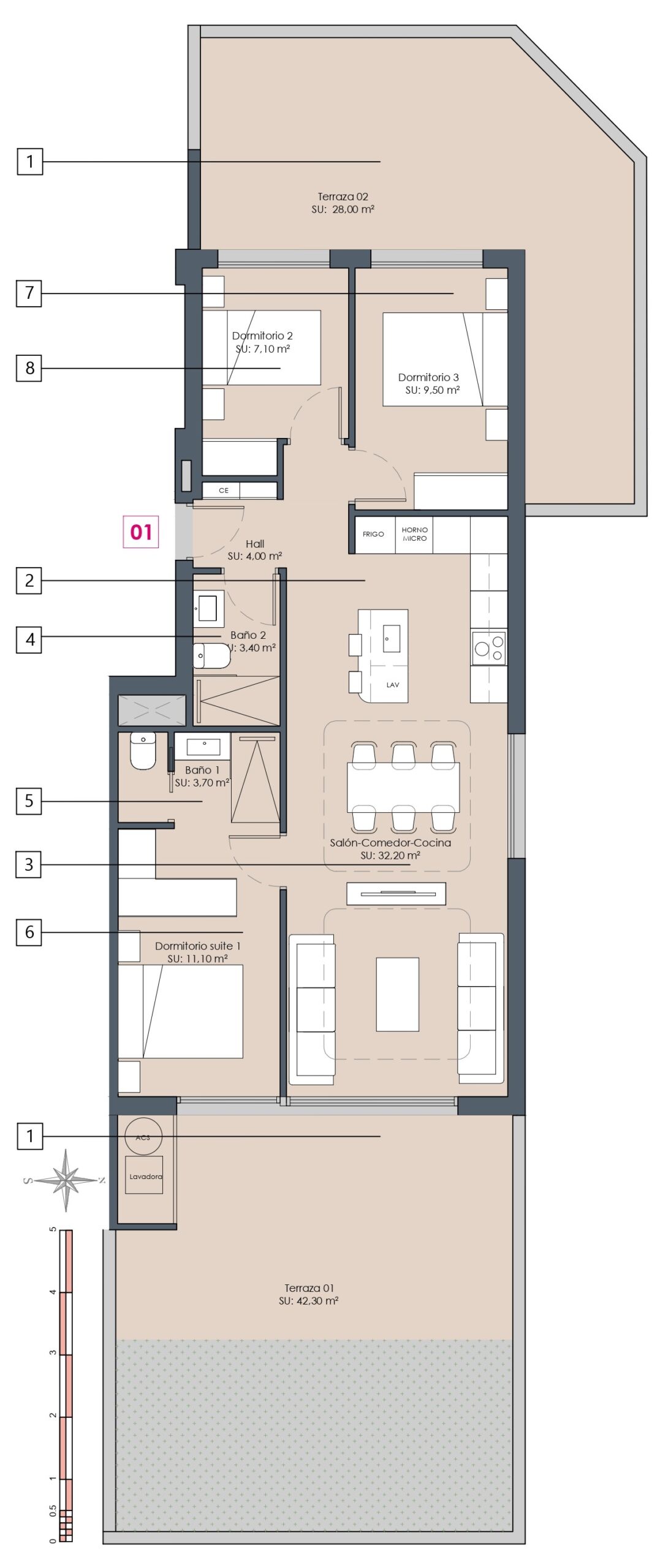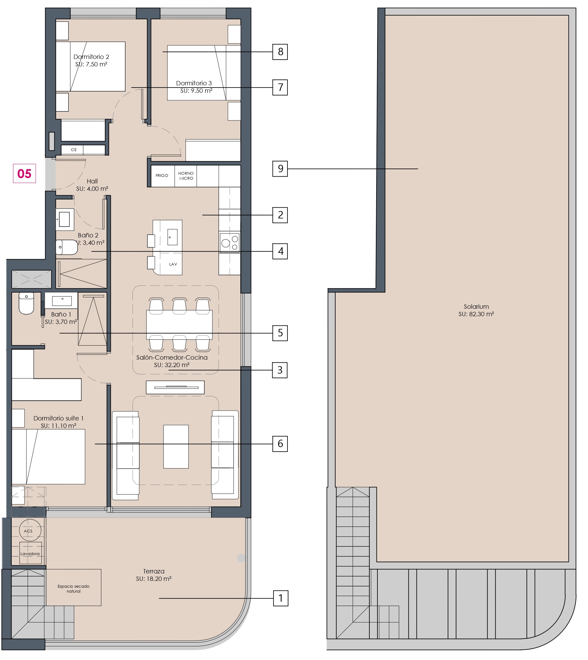 ✅ Penthouses enjoy a terrace but also private access to their own rooftop solarium (81m2+)
