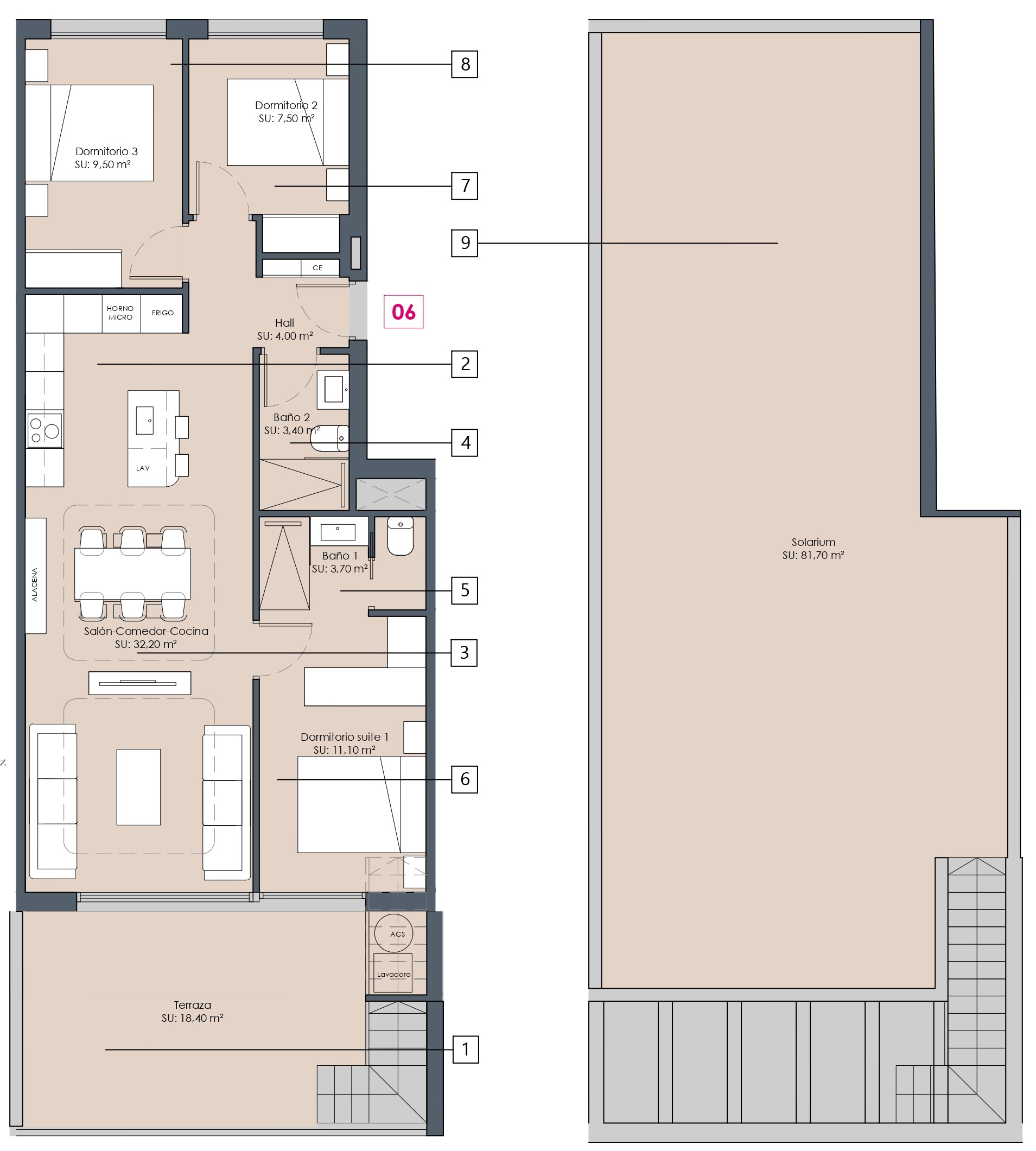 | 6 | ATICO | 81.5m2 | 18.4m2 | 82.9m2 | 9.1m2 | €399,900 |