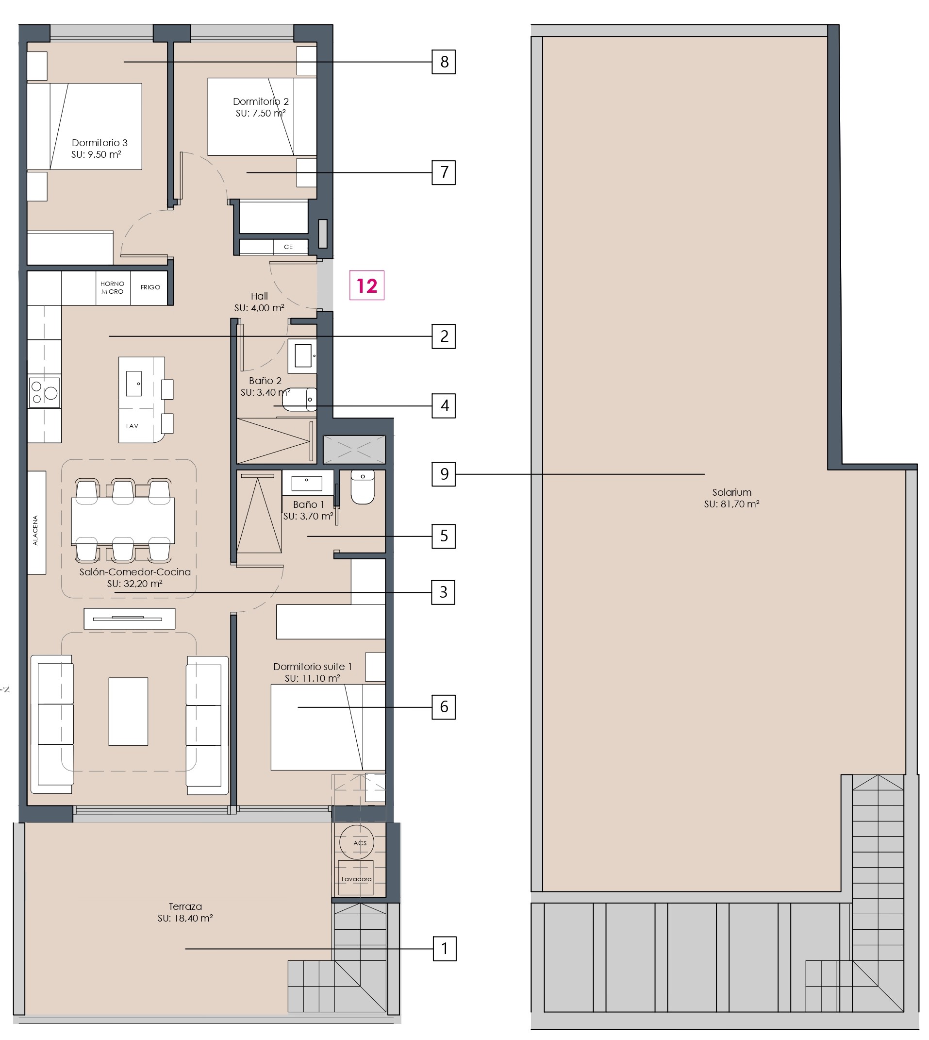 | 12 | ATICO | 81.5m2 | 18.4m2 | 82.9m2 | 9.0m2 | €399,900 |