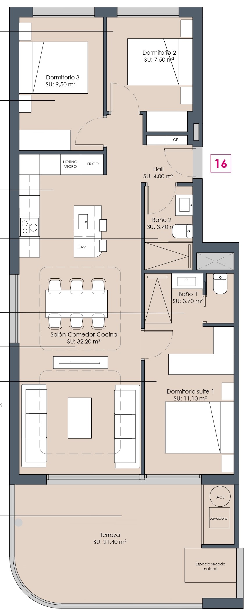 | 16 | 1 | 83.5m2 | 21.4m2 | 7.1m2 | €309,900 | |