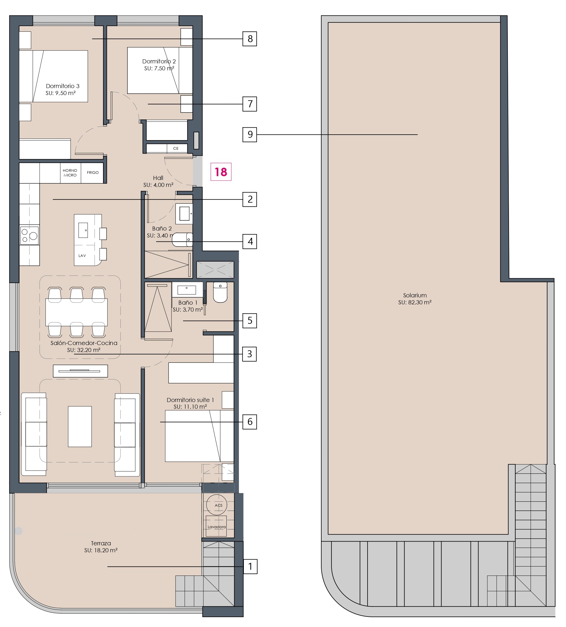 | 18 | ATICO | 83.5m2 | 18.2m2 | 83.5m2 | 9.3m2 | €429,900 |