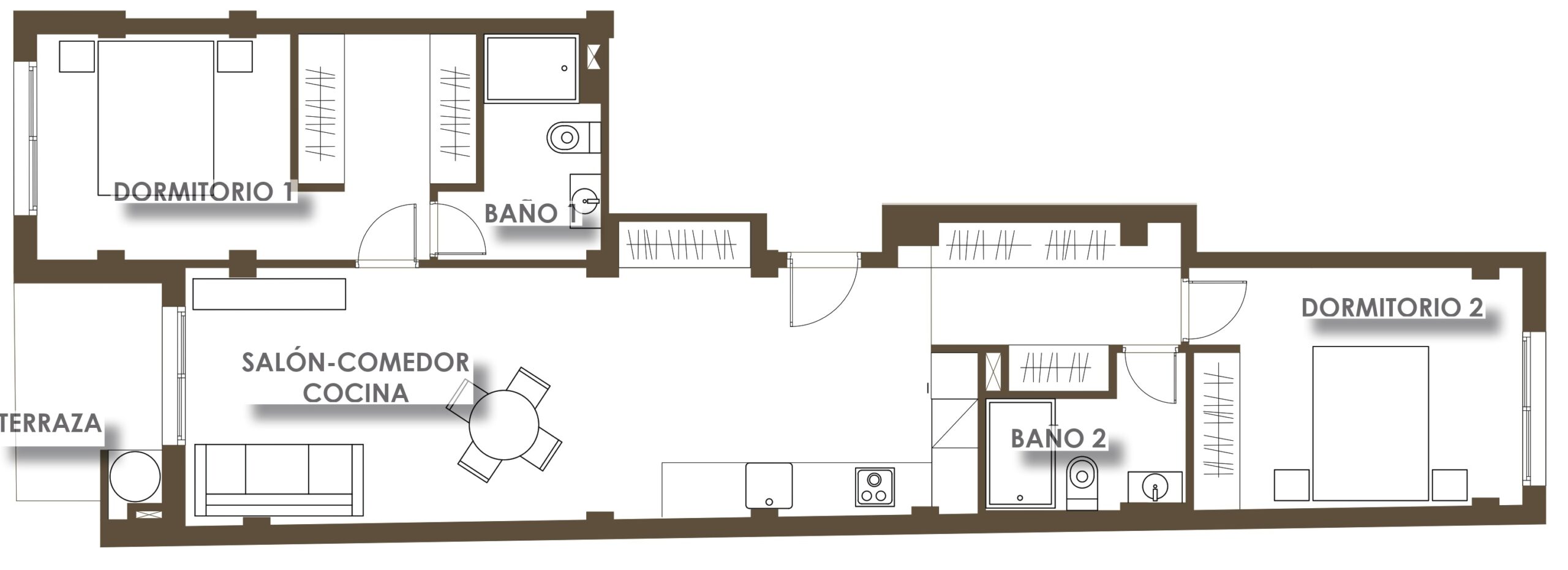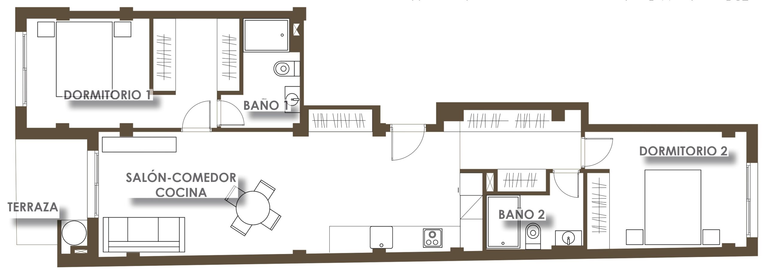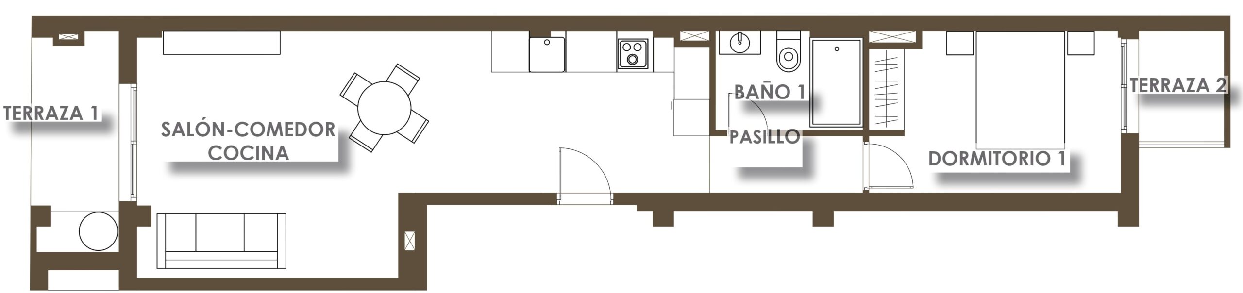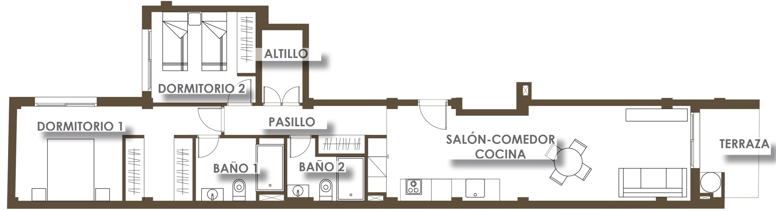 | Atico B | 74m2 | 27m2 | 18m2* | 14m2 | 13m2 | 51m2 | €440k |