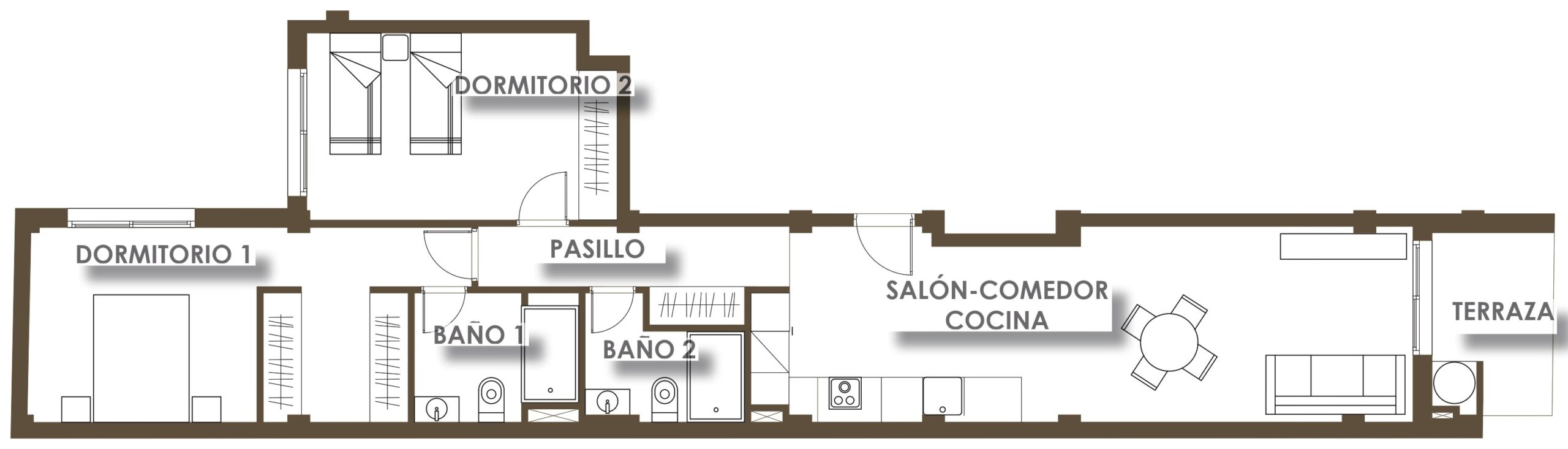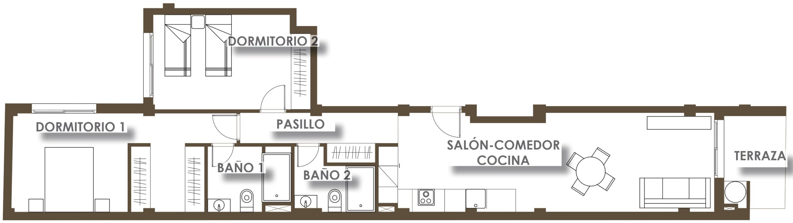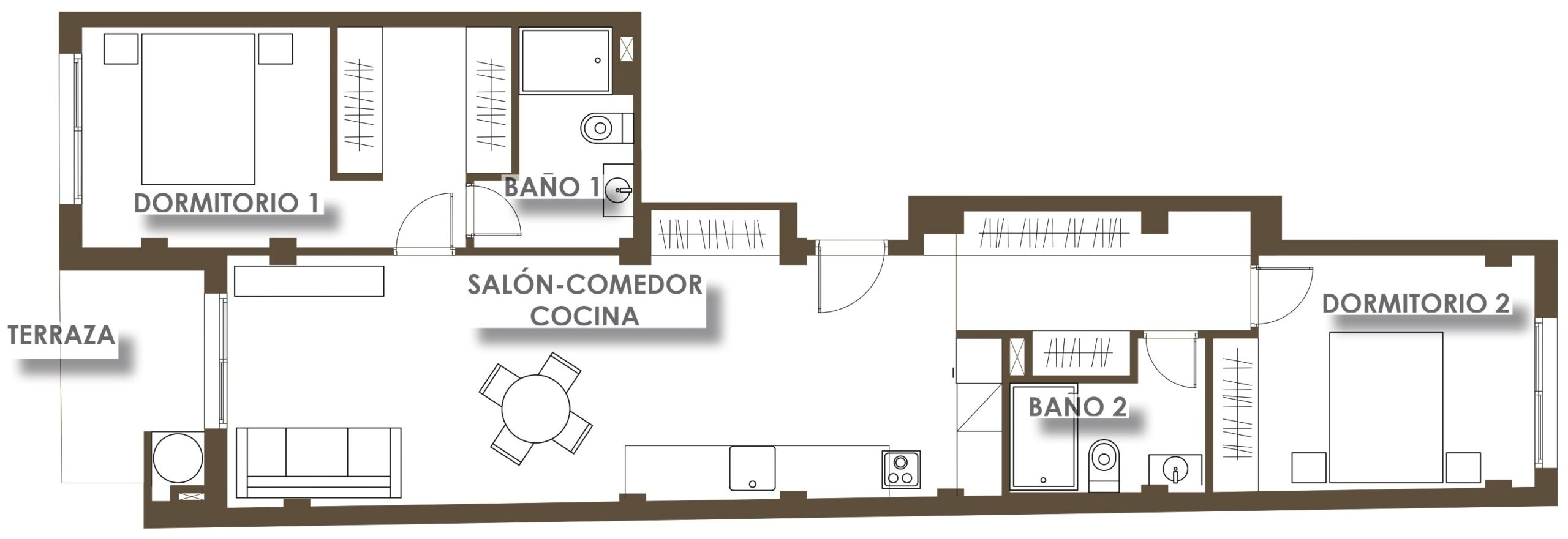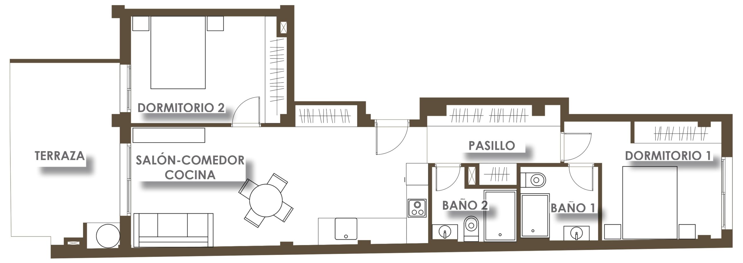| Atico B | 74m2 | 27m2 | 18m2* | 14m2 | 13m2 | 51m2 | €440k |