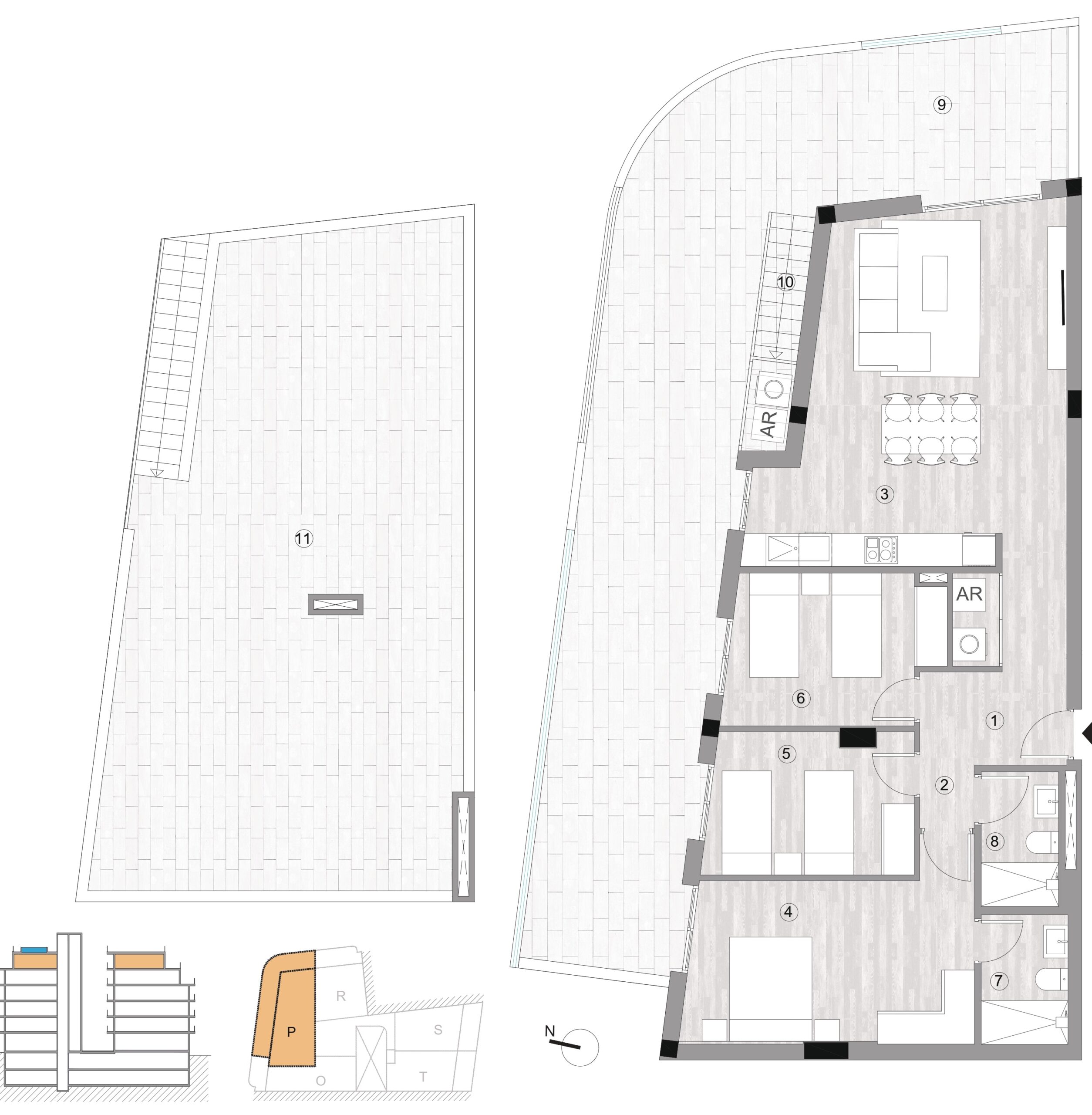 | Atico 5R | 60m2 | 25m2 | 12m2* | 11m2 | 20m2 | 65m2 | ā¬350,000 | |