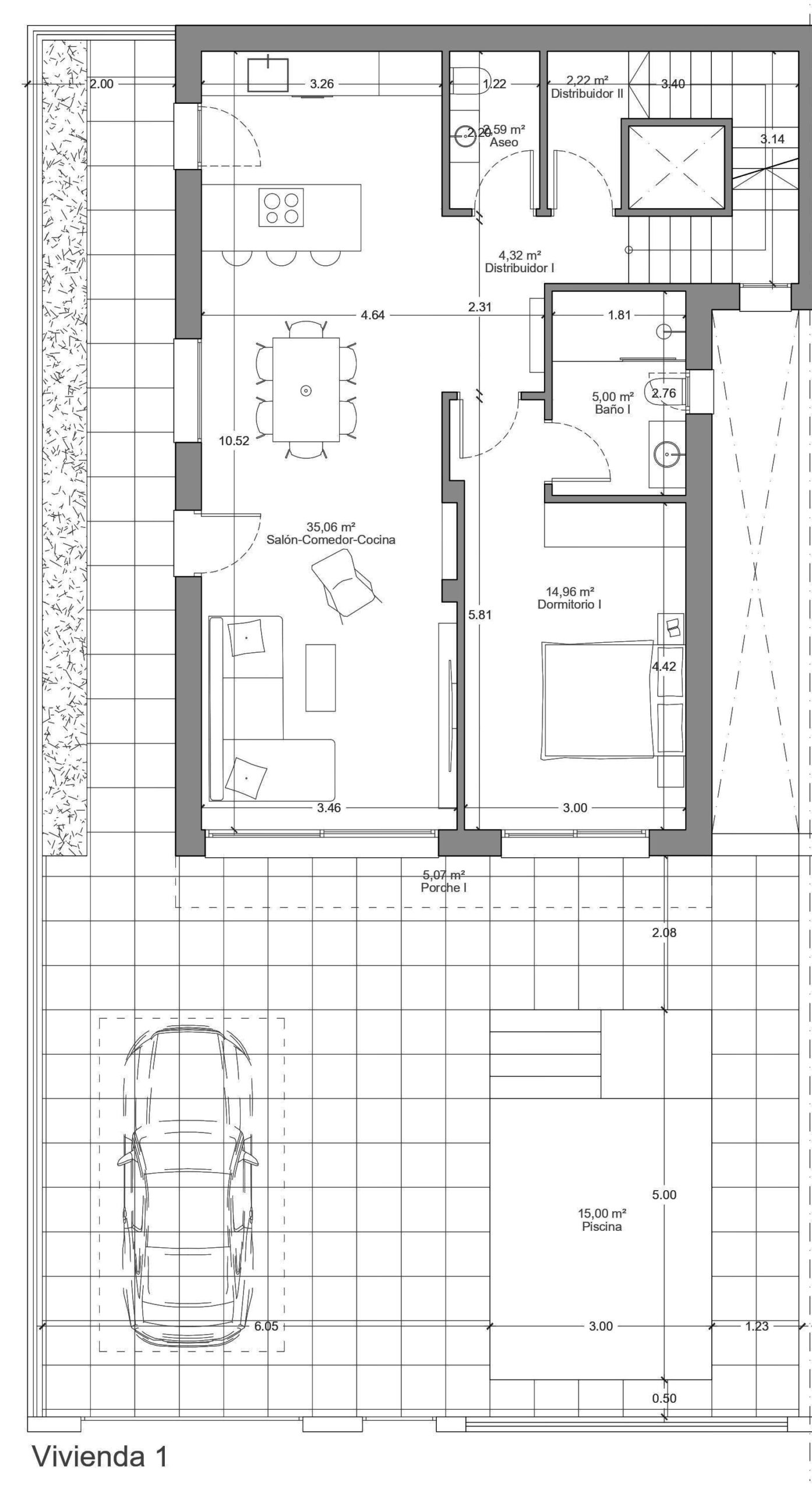 ✅ Separate pedestrian & vehicle access to front sun terrace with 15m2 private pool
