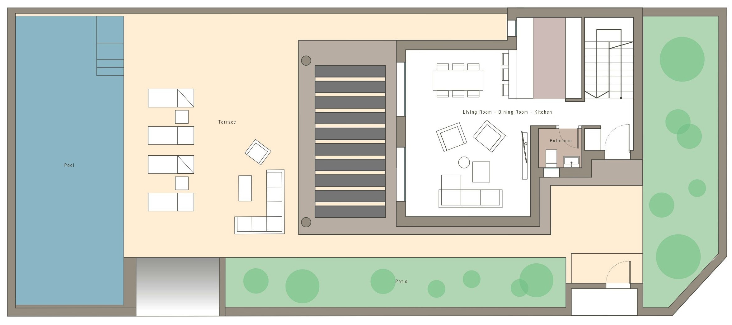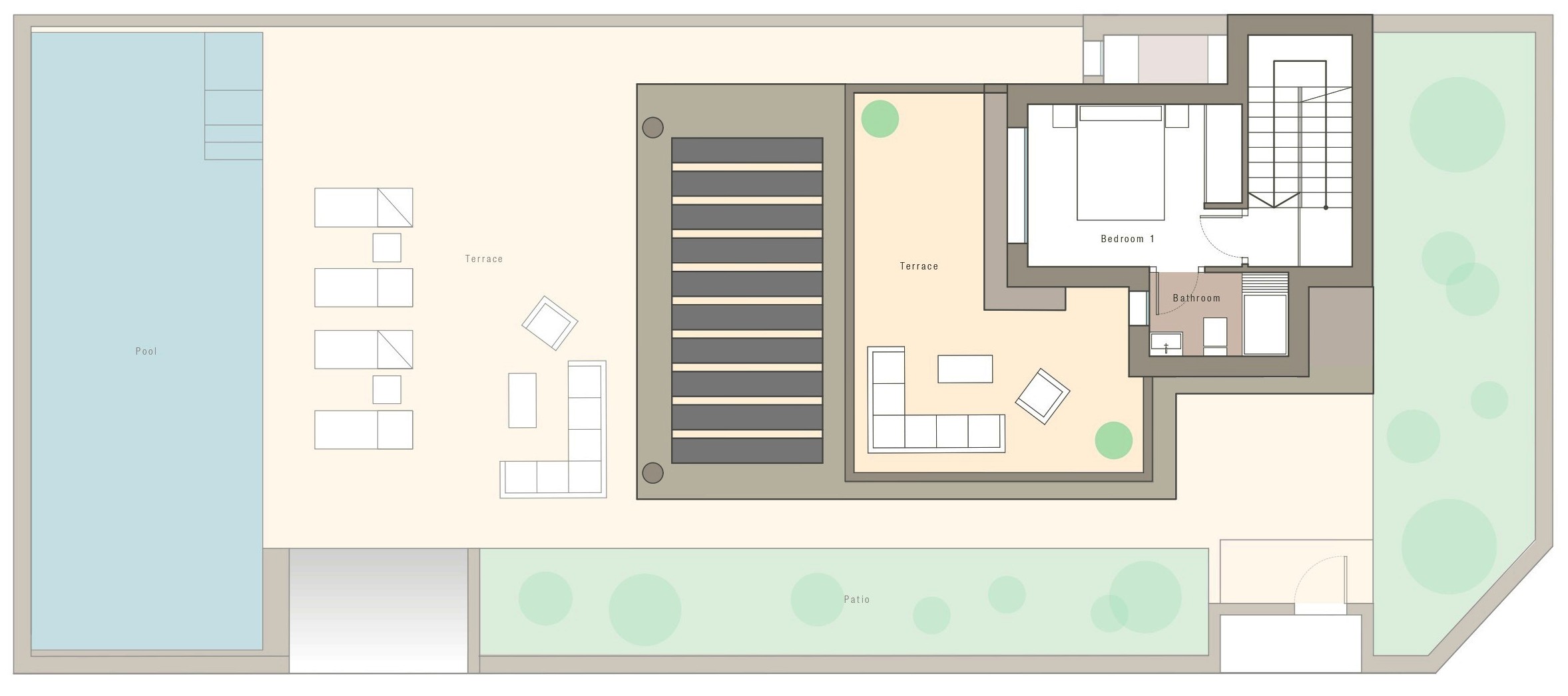 ✅ Large pool terrace with room for sunbathing & dining