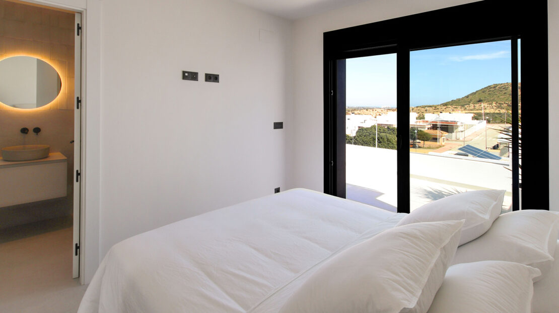 The crowning glory is the first-floor main bedroom suite, with wraparound sun terrace enjoying views of natural park, countryside & the Mediterranean.