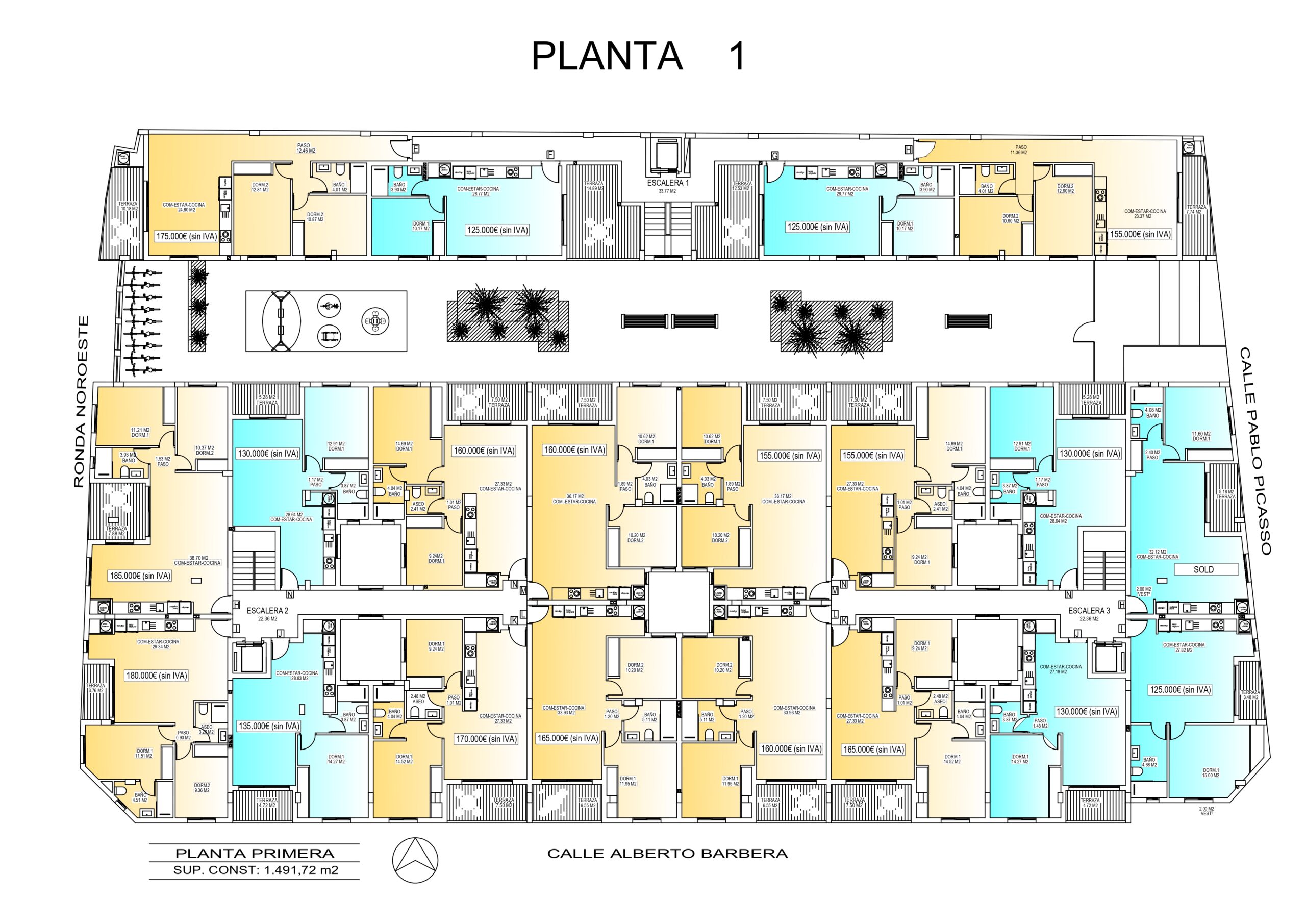 | 1-1-G | First | 42m2 | 13m2 | 1 / 1 | €125k |