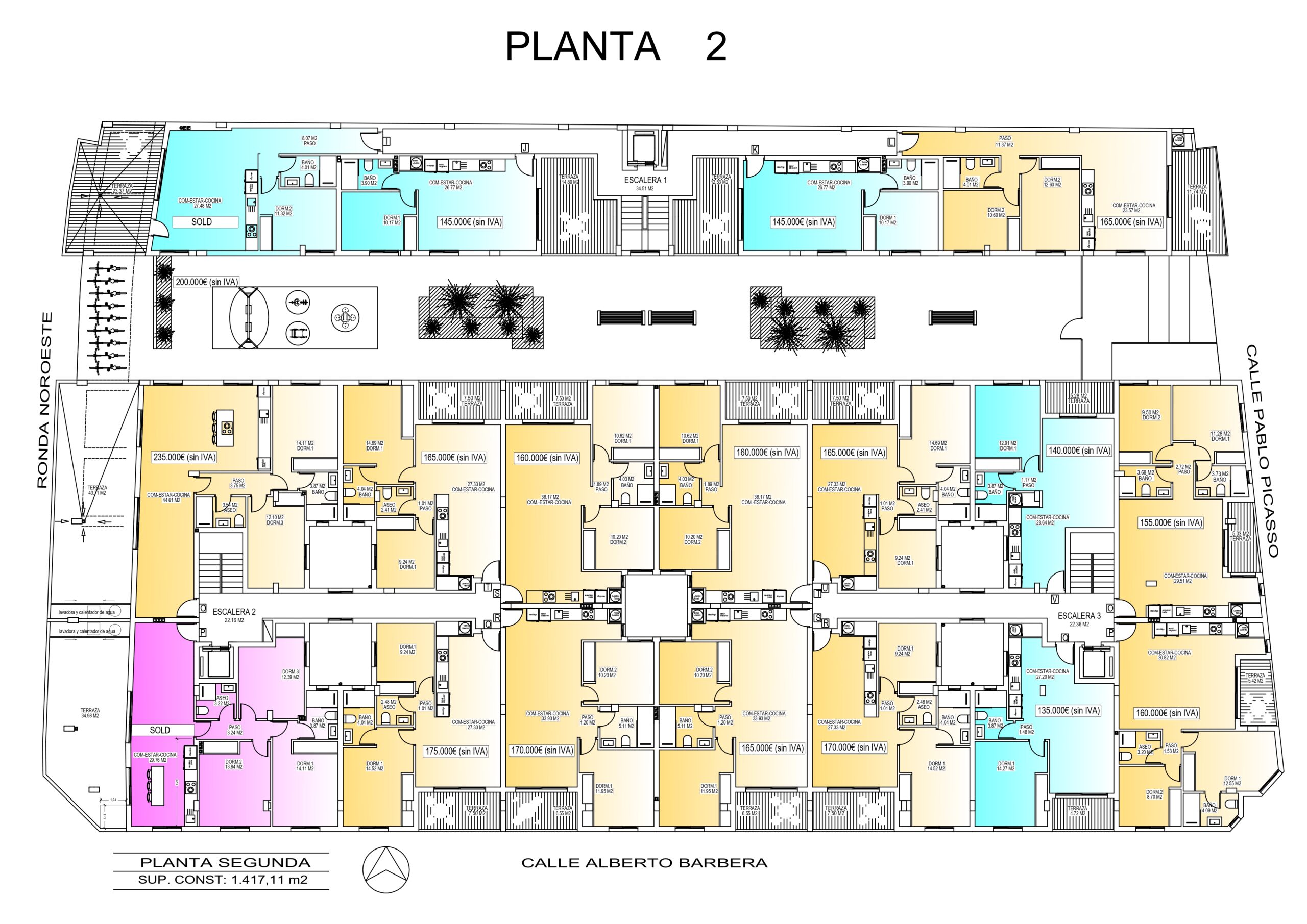 | 2-3-R | Second | 61m2 | 8m2 | 2 / 1.5 | €170k |