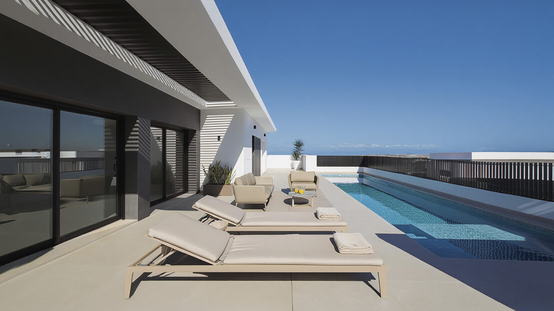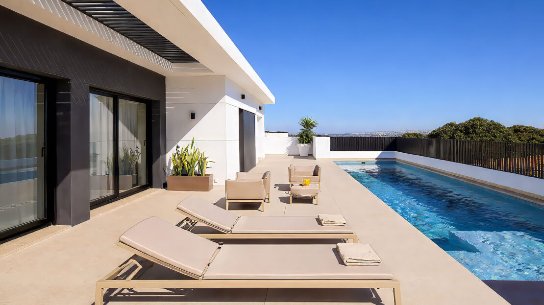 Stylish design villa distributed over 2 floors with spacious private pool and ideal sun orientation, overlooking the mountains.