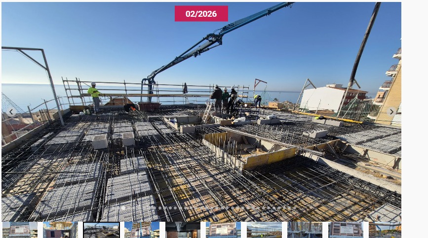 This atico / penthouse unit is undoubtedly the crowning glory of the project, with an equally spectacular sea view. This image from what will be the seaward rooftop solarium was taken in February, 2026.