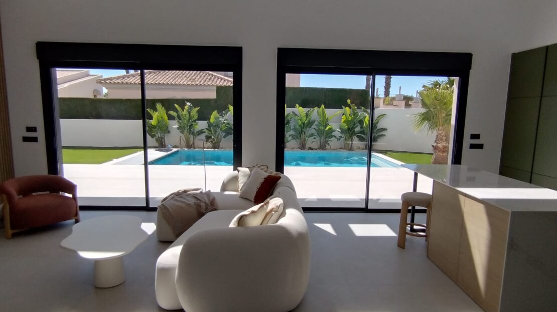 A genuine one-of-a-kind, this architect-designed new home sits in a quiet cul-de-sac only yards off Quesada’s main street, Avenida de Las Naciones.