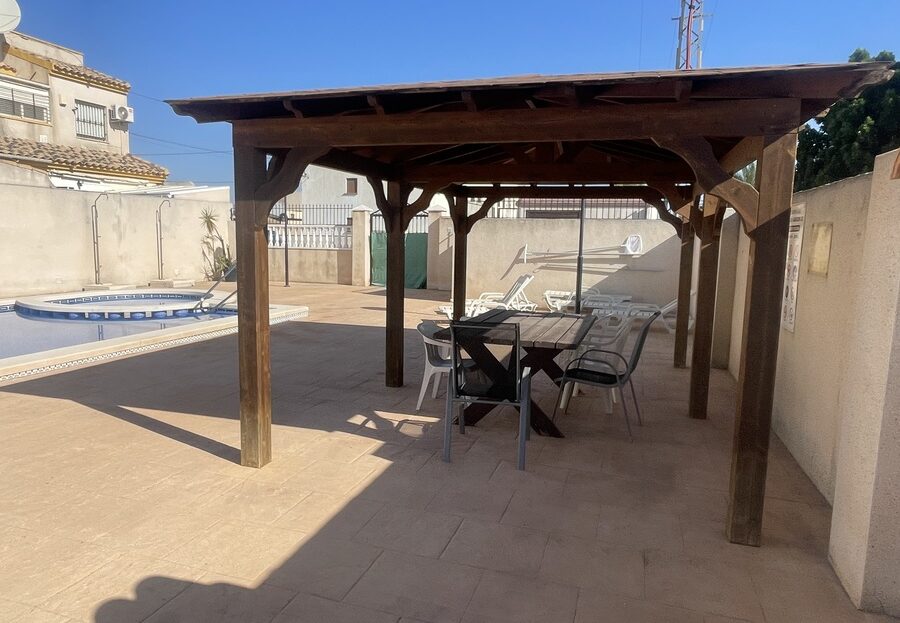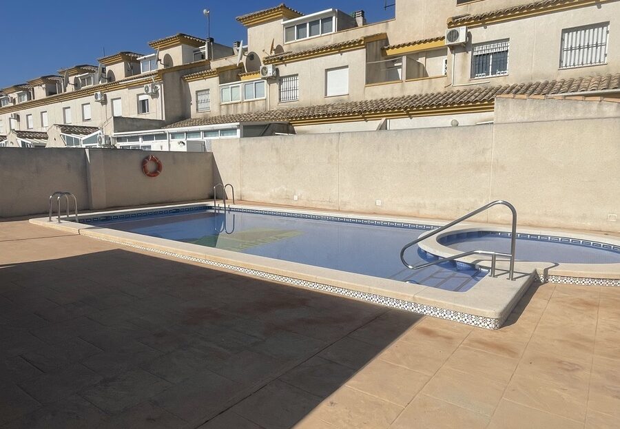 Charming 3-Storey Townhouse in the Heart of Daya Nueva – Great Value & Stunning ViewsSet in the peaceful and picturesque village of Daya Nueva, this well-presented three-storey townhouse offers exceptional value and a lifestyle full of charm and comfort. With three bedrooms, two bathrooms, and access to a communal pool, it’s an ideal choice for families, holidaymakers, or investors seeking a slice of authentic Spanish village life.On the ground floor, the property features a spacious living room, a separate kitchen with direct access to the rear patio, a bedroom, and a bathroom—perfect for guests or single-level living.Upstairs, you’ll find two additional bedrooms and a second bathroom, along with a staircase leading to the private solarium. From here, enjoy open views across the countryside to the Crevillente mountains on one side and the communal pool on the other—an ideal spot for sunbathing, dining, or simply relaxing.With front and rear patios, generous interior space, and a tranquil setting just a short drive from the beaches and amenities of the Costa Blanca, this property represents excellent value for money.Book your viewing today and discover the charm of Daya Nueva for yourself.
